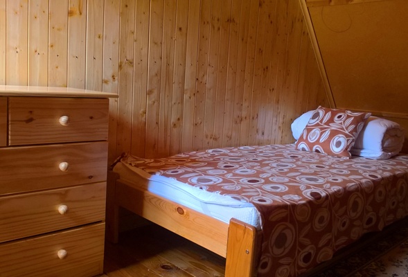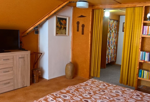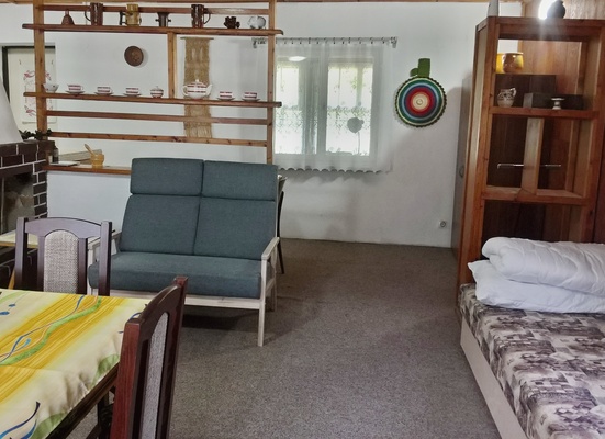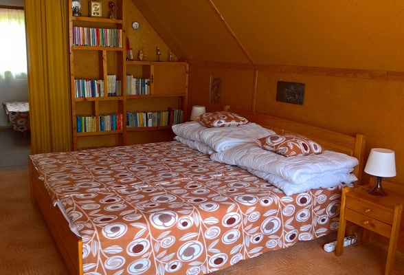lůžek rozmístěných ve čtyřech místnostech. Podkroví, kam vedou strmější